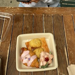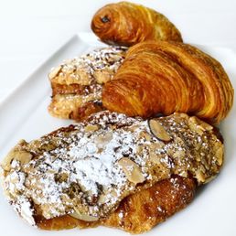 One of my absolute favorite restaurants in LA. When I used to live in Beverly Hills I would stop by every morning for a white chocolate mocha and a pastry. Now it's a treat when we can have it delivered. The croissants are that perfect French style where each layer has a crisp crunch when you bite into it. Waaaaaay back in the day there used to be a black cod bahn mi baguette sandwich that I adored, but after that left the menu, my go to quickly became the egg croissant with avocado added. The eggs are so soft and perfect. And the dressing for the arugula salad is the perfect dipping sauce. But really any pastry is delicious. Always try the pain suisse. Today we got inspired when we saw that the cookie croissant was on the menu. Oh my goodness that is my new favorite decadent delight. Grab it. Immediately. But save me one.